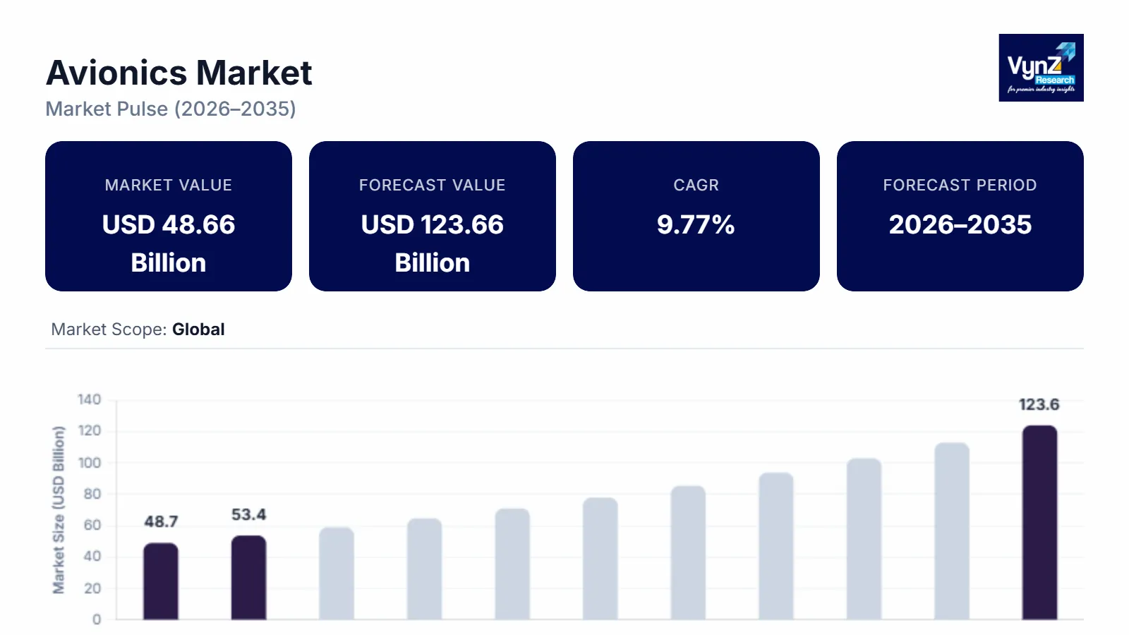 VynZ Research provides an analysis of the key trends in each segment of the Global Avionics Market report, along with forecasts at the regional and country levels from 2026-2035. Our report has categorized the market based on system, platform, fit and end user.